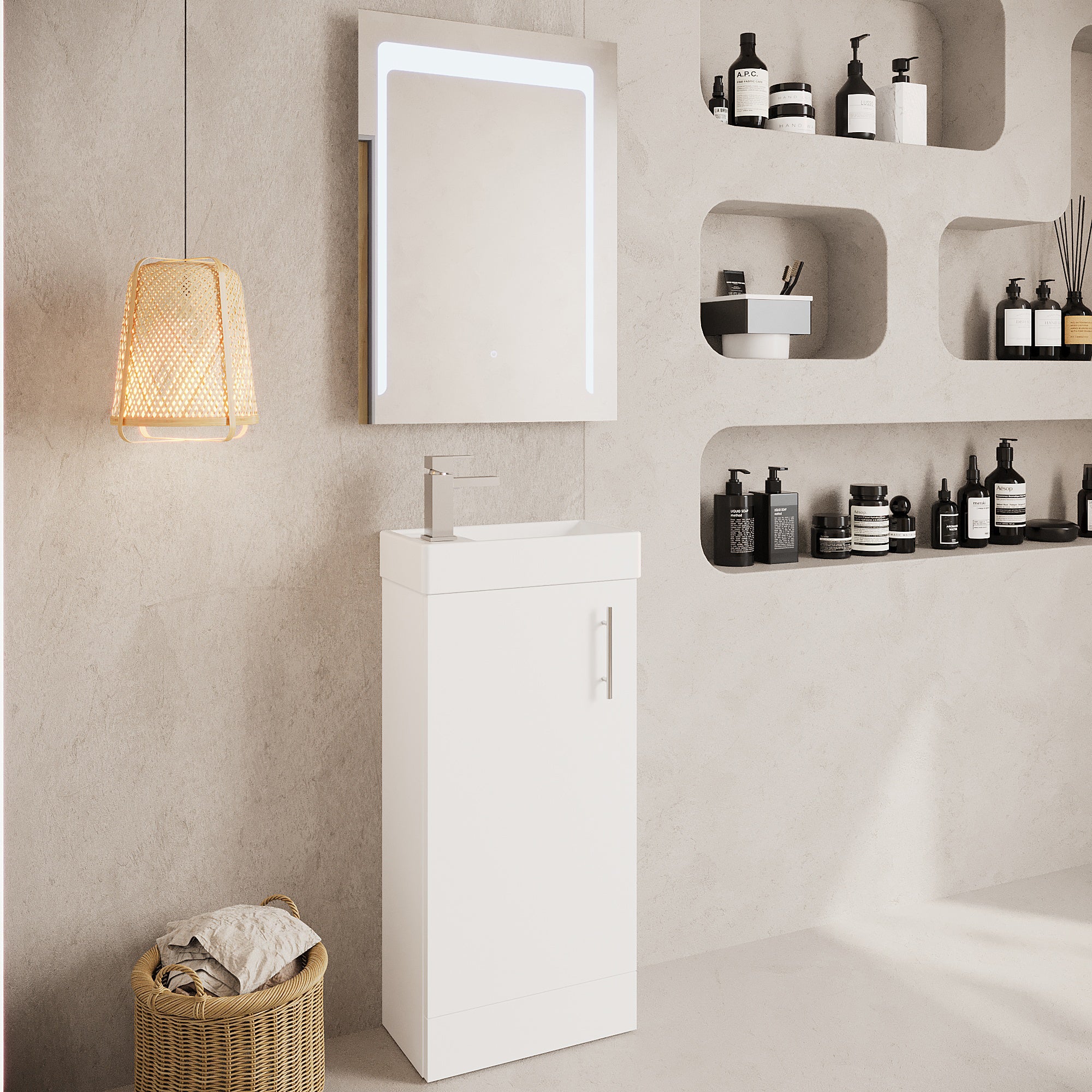 400mm Floor Standing Bathroom Vanity & Basin - Chrome Handle - Gloss White