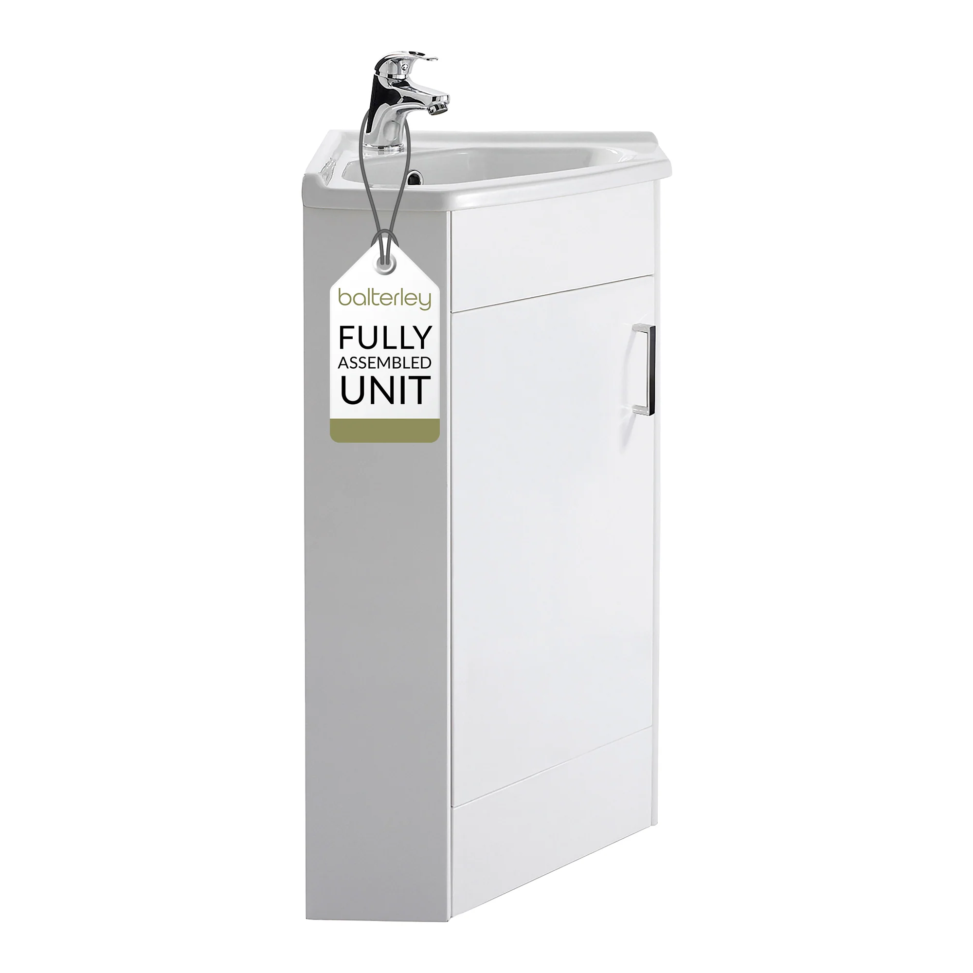 Hamstall Gloss White Corner Bathroom Cloakroom Vanity Basin Unit - 1 or 2 Door Option