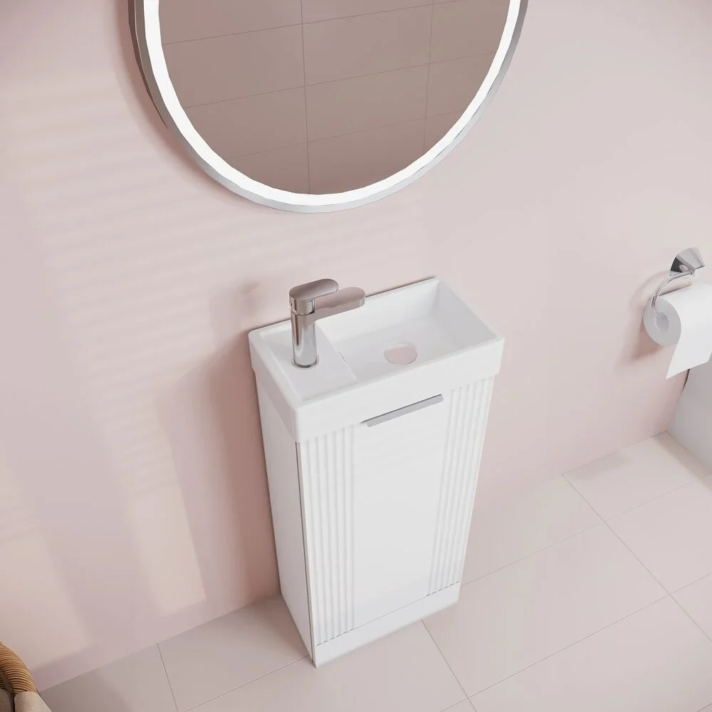 Bring art-deco charm and contemporary function together with the Belvide Retro Fluted Floor Standing Vanity Basin Unit. Its signature fluted front detailing introduces a decorative, design-led quality that elevates a compact vanity into a genuine style feature, while the floor-standing form offers a grounded, structured presence that anchors the room with quiet confidence. The slim 400mm profile makes it an ideal choice for cloakrooms and smaller bathrooms where space is at a premium.